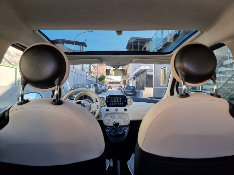 Di serie: ABS - Airbag ginocchia lato guida [150] - Airbag guidatore dual stage [500] - Airbag laterali [505] - Airbag passeggero dual stage con disattivazione Bag [502] - Alzacristalli elettrici anteriori [028] - Bluetooth - Cambio manuale a 6 marce - Car Play/Android Auto [8EW] - Casse posteriori [RC9] - Cerchi in lega da 16" [1M1] - Chiave con transponder - Chiusura Centralizzata [228] - Climatizzatore a gestione manuale con filtro antipolline [025] - Controllo elettronico della stabilità - Controllo elettronico della trazione - Correttore assetto fari - Cruise Control [416] - ESC (Controllo Elettronico Della Stabilità) [392] - Fari Fendinebbia [097] - Fasce paracolpi in colore vettura con targhetta "500" [4M5] - Immobilizzatore - Interni in pelle Frau avorio con inserti rossi - Kit Cromo [4MQ] - Kit gonfiaggio/riparazione pneumatici (Fix&Go) [499] - Libretto Garanzia Italia [9JE] - Linea di bellezza rossa/bianca/rossa - Luci diurne (DRL) con tecnologia LED - Lum Cartaceo Italiano [850] - Modanatura cromata su cofano anteriore [4BJ] - Omologazione Euro 6 [6X9] - Pack Chrome [1J7] - Paraurti in tinta carrozzeria [876] - Plancia in legno nautico - Pretensionatore cinture - Quadro strumenti digitale a cristalli liquidi a colori TFT da 7" [4GF] - Radio CD/MP3 7" Touchscreen Uconnect - Radio DAB - Sedile guida regolabile in altezza [626] - Sedile posteriore sdoppiato 50/50 [195] - Sensori di parcheggio posteriori [508] - Servizi Live Uconnect [RSW] - Servoguida elettrica con sistema Dual Drive [112] - Sistema "Start&Stop" [5DE] - Sovratappeti [396] - Sovratappeti con inserti rossi - Specchi esterni elettrici verniciati color vettura [NHJ] - Specchi esterni elettrici verniciati color vettura riscaldabili [041] - Specchietti retrovisori cromati [4RR] - Speed limiter [58E] - Tasca retroschienale [339] - Telecomando apertura/chiusura porte [008] - Tergilunotto - Tetto in vetro fisso [59E] - TPMS indiretto con segnalazione selettiva dello pneumatico (Sensore pressione pneumatici) [5YB] - Uconnect 7" Radio Live touchscreen Bluetooth/USB con DAB [7Q9] - Volante in Techno-pelle 8 tasti con comandi radio [318] - Volante regolabile in altezza [011] - Windows bag [614]
