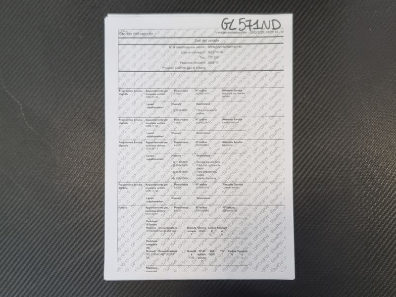 Equipaggiamenti: Di serie: 4 prese C-USB (2 anteriori e 2 posteriori con sola funzione di carica) - 6 altoparlanti - Airbag centrale anteriore di contenimento - Airbag guida, Airbag passeggero - Airbag laterali anteriori - Airbag per la testa anteriori - Airbag per la testa posteriori - App-Connect - Appoggiatesta (3) posteriori - Appoggiatesta anteriori ottimizzati contro il colpo di frusta WOKS - ASR (sistema controllo trazione) - Assistente alla svolta - Avviso del cambio di corsia - Bluetooth - Bracciolo centrale anteriore - Cambio meccanico sequenziale a controllo elettronico/ DSG - Cerchi in lega da 16" - Chiave con transponder - Chiusura centralizzata con telecomando - Cinture di sicurezza posteriori a tre punti - Climatronic - Correttore assetto fari - Cruise control - Cruise control adattivo - ACC - Digital Cockpit Pro da 10.25" [7J2] - Dispositivo disattivazione airbag passeggero [4UF] - DRL Led (profilo superiore proiettore) - EDS (Controllo elettronico trazione) - ESC+ABS, ASR, EDS, MSR - ESP (Programma elettronico di stabilità) - Fari a LED [PXF] - Fari LED posteriori [8VG] - Fatigue Detection - Rilevatore di stanchezza del guidatore - Filtro anti particolato - Freno di stazionamento e funzione "Auto Hold" [UH2] - Front Assist - Immobilizzatore - Indicatore temperatura esterna - Lane Assist (Sistema di assistenza al mantenimento di corsia) - Park Pilot - Sensori di parcheggio anteriori e posteriori - Pretensionatore cinture anteriori - Radio Composition Media 8,25'' - Regolazione lombare sedile guida - Ricezione Radio Digitale DAB+ [QV3] - Rivestimento sedili in tessuto "Maze" - Schienale posteriore divisibile e ribaltabile separatamente - Sedile guida reg. in altezza - Servosterzo elettromeccanico - Sistema Keyless Go - Specchietti retrovisori esterni regolabili e riscaldabili elettricamente - Tergilunotto - Tire Mobility Set (kit riparazione pneumatici) - Vetri elettrici anteriori - Vetri elettrici posteriori - Volante con palette per cambio DSG - Volante multifunzionale in pelle - Volante regolabile in altezza - Volante regolabile in profondità - Wireless charging [9ZV