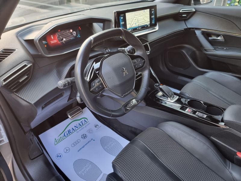 Equipaggiamenti di serie: 1 presa USB anteriore aggiuntiva di ricarica e 2 prese USB posteriori di ricarica - 3 appoggiatesta posteriori - 3D Connected Navigation 10" HD - 3D Connected Navigation 10" HD [ZJ17] - ABS, REF e AFU - Accensione automatica fari - Accensione automatica luci di emergenza in caso di forte decelerazione - Active Safety Brake - Airbag conducente/passeggero (con comando di disattivazione)/laterali anteriori/a tendina - Alzacristalli anteriori e posteriori elettrici sequenziali con funzione antipizzicamento - Autonomous Emergency Braking System 3 (AEBS 3) [ZVCA] - Autoradio - Badge GT - Barre al tetto nero brillante - Battitacco anteriore in alluminio - Blind Corner Assist (sistema di monitoraggio dell'angolo cieco della vettura) - Cambio automatico a 8 marce - Cerchi in lega 17" Salamanca bi-ton - Chiave con transponder - Chiusura centralizzata con telecomando - Climatizzatore automatico monozona - Conchiglie dei retrovisori esterni nero lucido - Controllo elettronico della trazione - Correttore assetto fari - Distance Alert - Drive mode (normal/eco) - Drive mode (normal/eco/sport) - Driver Attention Alert - ESP - Controllo Elettronico Stabilità - ESP e Hill Assist - Extended Traffic Sign Recognition - Fari fendinebbia a Led con funzione cornering [PR04] - Fari posteriori con firma LED a tre artigli - Filtro anti particolato - Fissaggi ISOFIX nelle sedute post. laterali - Fissaggio ISOFIX sedile passeggero anteriore - Freno di stazionamento elettrico con console alta e bracciolo anteriore centrale - Griglia calandra specifica con dettagli nero lucido a sviluppo verticale - Head-up Digital Display 10" 3D - High Beam Assist - Illuminazione d'ambiente in 8 colori sulla plancia e sui pannelli porta - Immobilizzatore - Indicatore perdita di pressione pneumatici - Indicatore temperatura esterna - Inserto grigio alluminio spoiler paraurti anteriore - Interni in tessuto Capy Nero / Tep Nero Mistral [A7FX] - Keyless Start - Keyless Start [YD02] - Kit di riparazione pneumatici - Lane Keeping Assist - Logo "GT" sulle fiancate - Maniglie esterne e retrovisori esterni in tinta carrozzeria - Modanature inferiori porte grigio alluminio - Pannelli porta con cuciture e dettagli Adamite - Paraurti posteriore con inserto grigio alluminio a contrasto - Pedaliera in alluminio - Peugeot Connect SOS & Assistance [YR07] - Peugeot i-Cockpit 3D con Head-up Digital Display 10" 3D - Piano di carico vano bagagli regolabile in altezza (2 posizioni) - Plafoniera anteriore "i-dome" a Led con luci di lettura a Led anteriore e posteriore - Plancia con decori aspetto carbonio - Pretensionatore cinture - Profili inferiori vetratura nero lucido - Proiettori Peugeot Full Led Technology con firma luminosa a tre artigli - Quadro strumenti con display centrale a colori 3,5" - Regolatore e limitatore di velocità con soglie programmabili - Retrovisore interno elettrocromatico frameless - Retrovisori esterni con indicatori di direzione integrati - Retrovisori esterni ripiegabili elettricamente con illuminazione suolo - Retrovisori esterni riscaldabili e regolabili elettricamente - Rivestimento cielo nero Mistral - Rivestimento console tunnel centrale nero lucido - Sedile conducente regolabile in altezza - Sedile passeggero regolabile in altezza - Sedile posteriore con schienale frazionabile 2/3 - 1/3 - Sedili sportivi - Sensori di parcheggio anteriori - Sensori di parcheggio posteriori - Servosterzo - Speed Limit Detection - Tappetini anteriori e posteriori specifici - Tergicristallo automatico - Tergilunotto - Tetto Black Diamond - Tinta metallizzata Orange Fusion [M02S] - Toggles switches con profilo cromato - Vetri post. e lunotto oscurati - Visiopark 180° (Retrocamera 180°) [WY38] - Volante in pelle traforata "Pieno Fiore" con cuciture Adamite e badge specifico - Volante regolabile in altezza e profondità