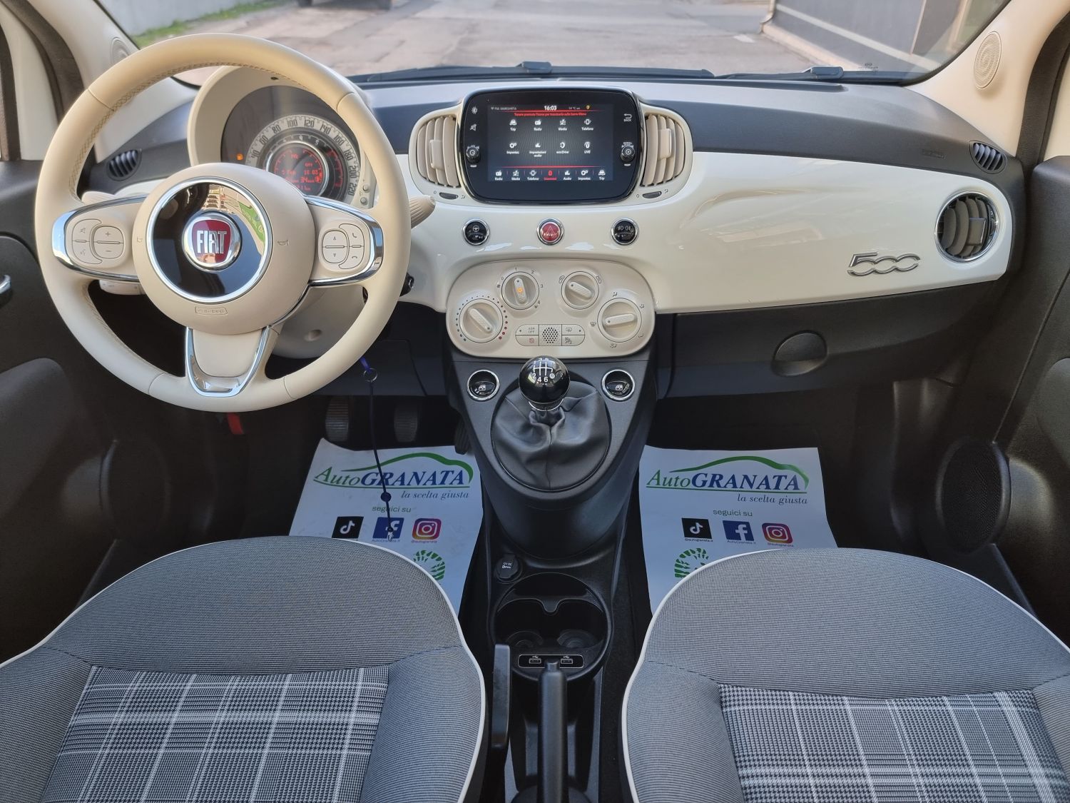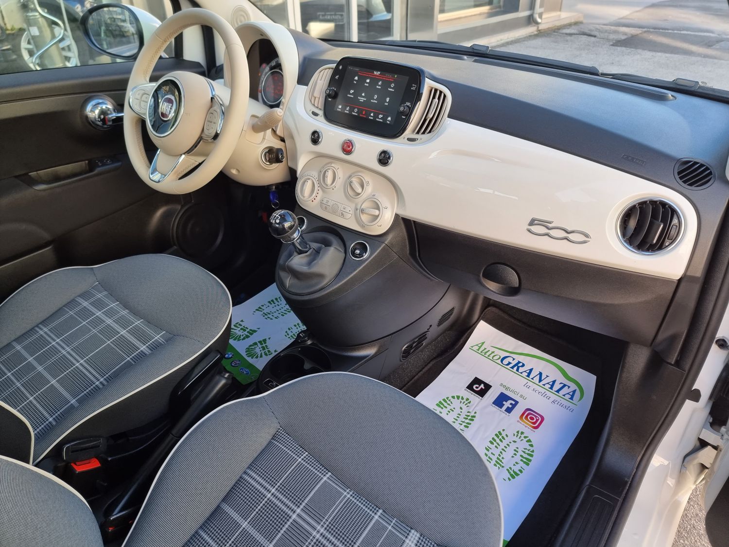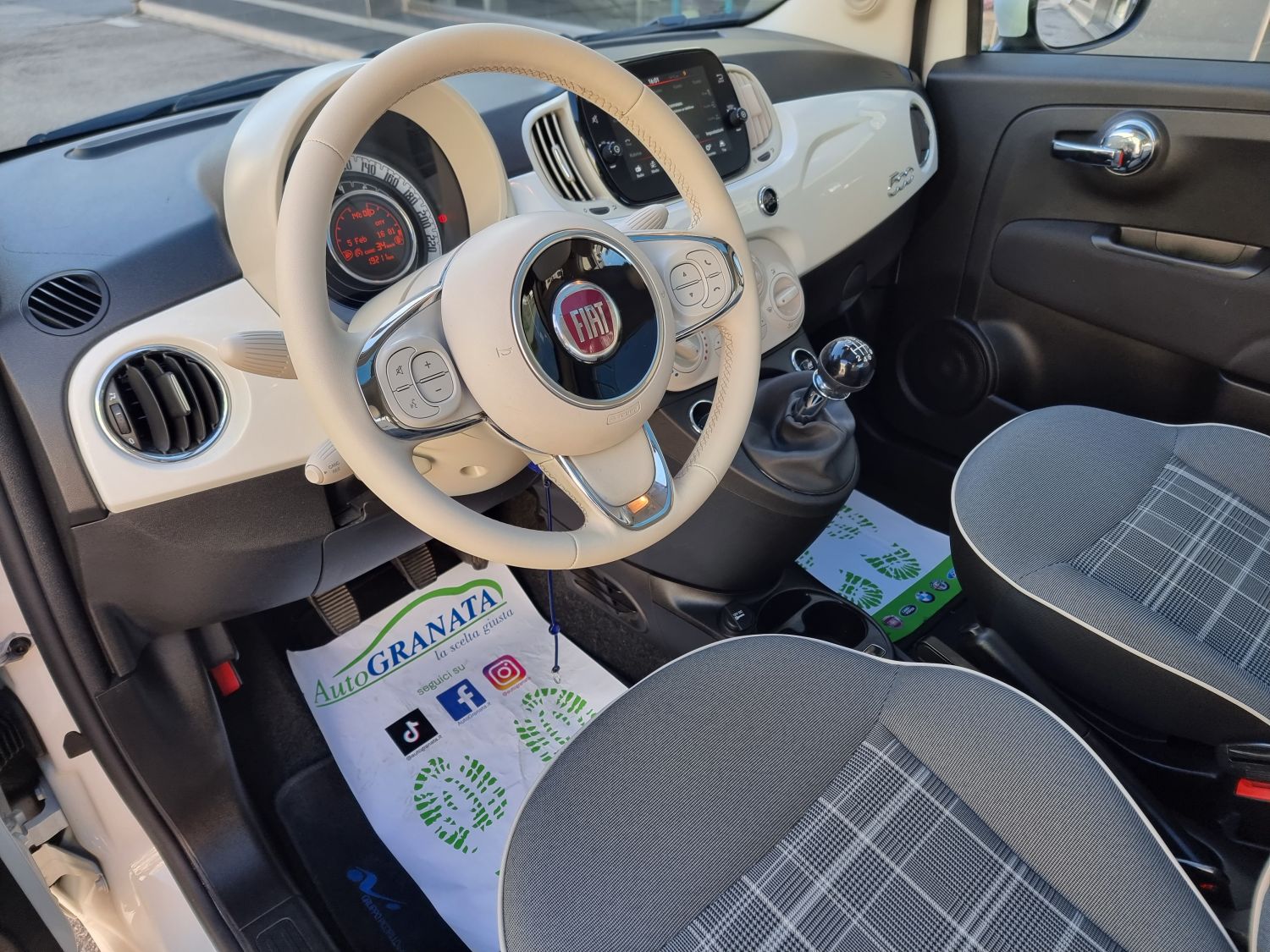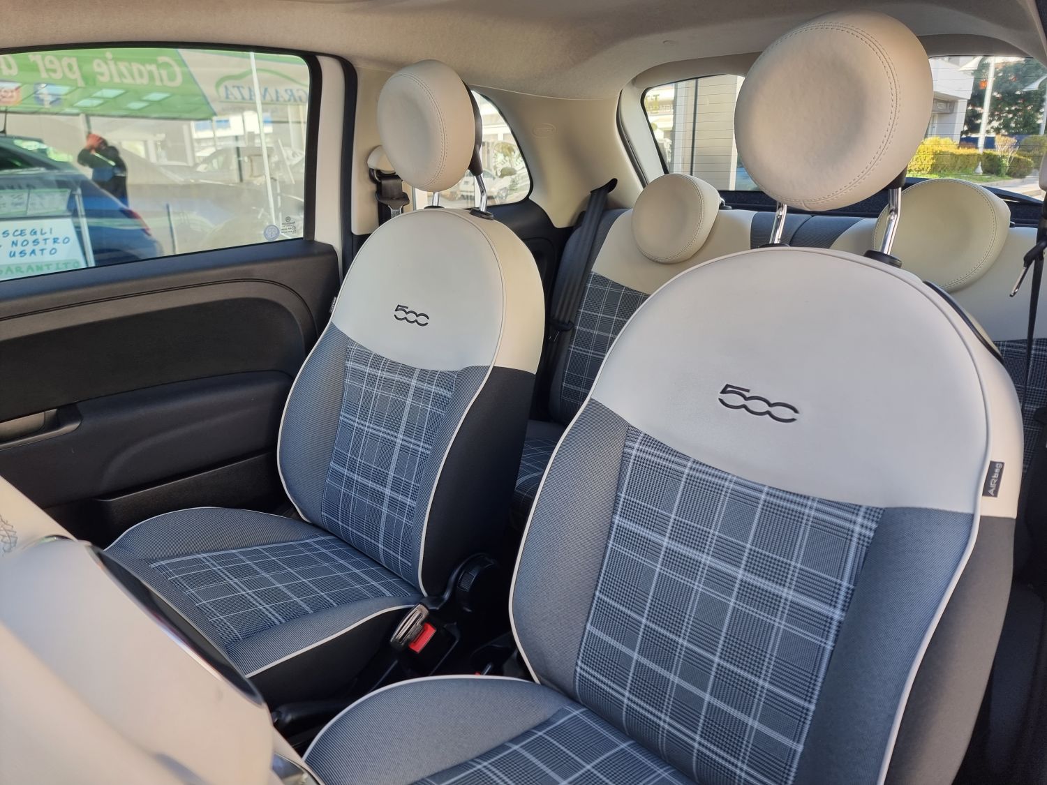 Di serie: ABS - Airbag ginocchia lato guida [150] - Airbag guidatore dual stage [500] - Airbag laterali [505] - Airbag passeggero dual stage con disattivazione Bag [502] - Alzacristalli elettrici anteriori [028] - Bluetooth - Cambio manuale a 6 marce - Car Play/Android Auto [8EW] - Casse posteriori [RC9] - Cerchi in lega da 16" [1M1] - Chiave con transponder - Chiusura Centralizzata [228] - Climatizzatore a gestione manuale con filtro antipolline [025] - Controllo elettronico della stabilità - Controllo elettronico della trazione - Correttore assetto fari - Cruise Control [416] - ESC (Controllo Elettronico Della Stabilità) [392] - Fari Fendinebbia [097] - Fasce paracolpi in colore vettura con targhetta "500" [4M5] - Immobilizzatore - Interni in pelle Frau avorio con inserti rossi - Kit Cromo [4MQ] - Kit gonfiaggio/riparazione pneumatici (Fix&Go) [499] - Libretto Garanzia Italia [9JE] - Linea di bellezza rossa/bianca/rossa - Luci diurne (DRL) con tecnologia LED - Lum Cartaceo Italiano [850] - Modanatura cromata su cofano anteriore [4BJ] - Omologazione Euro 6 [6X9] - Pack Chrome [1J7] - Paraurti in tinta carrozzeria [876] - Plancia in legno nautico - Pretensionatore cinture - Quadro strumenti digitale a cristalli liquidi a colori TFT da 7" [4GF] - Radio CD/MP3 7" Touchscreen Uconnect - Radio DAB - Sedile guida regolabile in altezza [626] - Sedile posteriore sdoppiato 50/50 [195] - Sensori di parcheggio posteriori [508] - Servizi Live Uconnect [RSW] - Servoguida elettrica con sistema Dual Drive [112] - Sistema "Start&Stop" [5DE] - Sovratappeti [396] - Sovratappeti con inserti rossi - Specchi esterni elettrici verniciati color vettura [NHJ] - Specchi esterni elettrici verniciati color vettura riscaldabili [041] - Specchietti retrovisori cromati [4RR] - Speed limiter [58E] - Tasca retroschienale [339] - Telecomando apertura/chiusura porte [008] - Tergilunotto - Tetto in vetro fisso [59E] - TPMS indiretto con segnalazione selettiva dello pneumatico (Sensore pressione pneumatici) [5YB] - Uconnect 7" Radio Live touchscreen Bluetooth/USB con DAB [7Q9] - Volante in Techno-pelle 8 tasti con comandi radio [318] - Volante regolabile in altezza [011] - Windows bag [614]