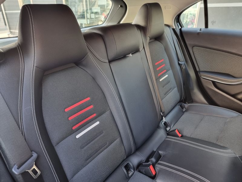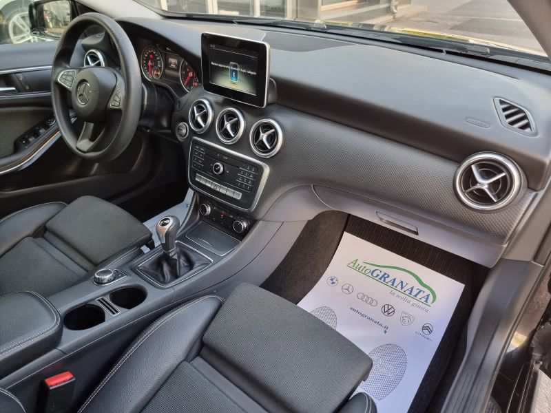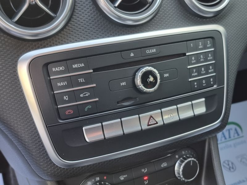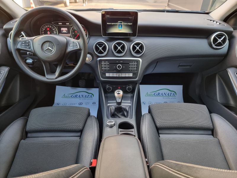 Di serie: 4 punti di ancoraggio nel vano bagagli - ABS (Anti-lock braking system) con BAS (Brake Assist System) - Accensione automatica dei fari (sensore crepuscolare) - Airbag anteriori per il bacino (laterali) - Airbag full-size lato guida e passeggero a doppio stadio di attivazione - Airbag per le ginocchia guidatore - Alzacristalli elettrici anteriori con funzione "Express-up" - Alzacristalli elettrici posteriori con funzione "Express-up" - Antenna radio integrato nello spoiler sul tetto - Appoggiatesta posteriori - ASR (Acceleration skid control) - Assetto standard con sospensioni comfort e sterzo parametrico senza demoltiplicazione variabile [485] - ATTENTION ASSIST PLUS (sist.di protez. da stanchezza e colpi di sonno con sensibilità regolabile) - Audio 20 CD con predisposizione per Garmin Map Pilot [522] - Avvisatore acustico freno di stazionamento inserito e mancato disinserimento luci - Bracciolo anteriore con box portaoggetti - Brake Assist attivo (segnale ottico/acustico di avvertimento ostacolo fermo e frenata parz. aut.) [258] - Cambio meccanico a 6 marce [411] - Cerchi in lega diamantati da 17" - Chiave con transponder - Chiusura centr. con sensore crash e chiusura aut. in movimento - Cinture di sicurezza anteriori regolabili in altezza con pretensionatore elettronico - Cinture di sicurezza posteriori (3) a tre punti - Climatizzatore automatico THERMATIC [580] - Climatizzatore automatico THERMATIC [580] - COLLISION PREVENTION ASSIST PLUS (segnale ostacolo fermo che precede con frenata d'emergenza) - Display multifunzione a colori al centro della plancia strumenti (con temp. esterna) - Eco START/STOP [B03] - ESP (Electronic stability program) - ESP (Electronic stability program) con ASR (Acceleration skid control) - Fari fendinebbia posteriori - Faro alogeno [620] - Filtro antiparticolato (DPF) [474] - Freno di stazionamento elettrico con funzione comfort e rilascio automatico - Hill start assist - ausilio alla partenza in salita - Immobilizzatore - Indicatori di direzione con funzione "one-touch" - Interfaccia USB per impianti audio e video esterni nel bracciolo centrale - Keyless Start: accensione/spegnimento motore tramite pulsante [893] - Kit di pronto soccorso - Luce vano bagagli - Luci freno adattive (in caso di frenata di emergenza lampeggiano automaticamente) [K11] - Lunotto termico temporizzato - Modulo UMTS (servizi base Mercedes me connect) [360] - Navigatore multimediale Garmin® MAP PILOT [357] - Pacchetto comfort per i sedili anteriori [U59] - Portaoggetti e presa da 12 V nella consolle centrale - Rivestimento cielo in tessuto nero [51U] - Sedile guida regolabile in altezza - Sedile posteriore sdoppiato - Sedili sportivi in pelle ecologica ARTICO e tessuto nero con righine verdi [461] - Servosterzo - Sistema di avviso perdita di pressione dei pneumatici - Sistema di chiamata di emergenza aut. in caso di incidente (non necessita di telefono cell.) [351] - Sistema di controllo della pressione pneumatici [475] - Sistema di fissaggio seggiolino per bambini ISOFIX - Sistema di manutenzione individuale "Assyst" con indicazione degli interventi di manutenzione - Specchietti retrovisori regolabili elettricamente, riscaldabili e in tinta con la carrozzeria - Telecamera posteriore per la retromarcia assistita [218] - Tempomat con Speedtronic [440] - Tergicristalli con touch control - Tergilunotto - Terza luce di stop a LED - Tirefit (sigillante con compressore) [B51] - Vernici pastello - Volante multifunzione a 12 tasti a tre razze [442] - Volante regolabile in altezza e profondità - Windowbag per lato guida e passeggero [290]