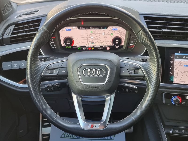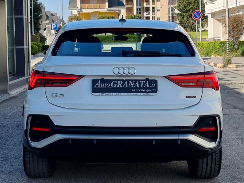 Allestimento S Line : ABS - Adaptive speed assist (ACC) [PCG] - Airbag guida - Airbag laterali anteriori - Airbag laterali per la testa - Airbag passeggero [4UE] - Alloggiamento specchietti retrovisivi esterni in colore carrozzeria [6FA] - Appoggiabraccia centrale anteriore scorrevole e regolabile in inclinazione - Appoggiatesta posteriori (3) regolabili - Assetto sportivo con taratura più rigida delle sospensioni - Assistenza alla partenza in salita - Attacchi Isofix con Top Tether per i sedili esterni della panca posteriore - Attrezzi di bordo [1S3] - Audi connect navigation & infotainment plus [IT3] - Audi Drive Select (modalità: comfort, auto, dynamic, efficiency, offroad, individual) - Audi pre sense front - Audi pre sense front [6K2] - Audi pre sense front con riconoscimento pedoni - Audi smartphone interface [UI2] - Audi virtual cockpit (display 10,25") [9S1] - Battitacco anteriore con inserto in alluminio illuminato con logo S [VT5] - Cambio automatico S tronic a 7 rapporti - Cerchi in lega d'alluminio S line a 5 razze doppie design dinamico 7Jx19 (pn.235/50) [U25] - Chiamata di emergenza e assistenza Audi connect con Audi connect Remote & Control - Chiave con transponder - Chiusura centralizzata - Cielo dell'abitacolo in tessuto argento luna - Climatizzatore automatico bizona - Consolle centrale con vano portaoggetti - Controllo automatico velocità - Controllo elettronico della trazione - Correttore assetto fari - Dispositivo di assistenza per proiettori abbaglianti [8G1] - Dispositivo per la disattivazione dell'airbag passeggero - Elementi in look alluminio per interni [QJ1] - Fari adattativi - Fendinebbia - Filtro anti particolato - Frenata automatica di emergenza posteriore - Freno di stazionamento elettromeccanico [UH1] - Funzione Stop&Go - Immobilizzatore elettronico - Indicatore (visivo e acustico) perdita pressione pneumatici - Indicatore temperatura esterna - Inserto in argento Micrometallic - Kit pronto soccorso, triangolo di emergenza, con due giubbottini d'emergenza - Kit riparazione pneumatici [1G8] - Lane departure warning (disp. di assistenza per mantenimento di corsia) - Luci targa con tecnica LED - Materiale pronto soccorso con triangolo di emergenza [1T3] - MMI Radio Plus - MMI Radio Plus (display da 10.1") - Monitoraggio angolo cieco - Monitoraggio traffico trasversale posteriore - Pacchetto assistenza [PCE] - Pacchetto Business Plus (edition aut.) [WDE] - Pacchetto esterno lucido con cornice finestrini in alluminio anodizzato - Pacchetto luci interne parzialmente a LED [QQ1] - Panca posteriore ripiegabile 40:20:40 e scorrevole - Parabrezza con isolamento acustico - Pneumatici 235/50 R19 99V [H4L] - Portellone vano bagagli ad apertura e chiusura automatica [4E7] - Presa di corrente da 12V nella consolle centrale posteriore - Pretensionatore cinture - Proiettori a LED con gruppi ottici posteriori a LED (con indicatori di direzione dinamici) [PX2] - Protezione del bordo di carico in acciaio inox [2P2] - Quadro strumenti in in nero lucido con cornice in look alluminio - Regolazione man. altezza degli appoggiatesta e cintura di sicurezza - Retrovisori ripiegabili elettricamente - Ricezione Radio digitale (DAB) - Riconoscimento della segnaletica basato su telecamera - Riconoscimento pedoni - Rivestimento in tessuto Index per sedili sportivi [N5F] - Sedile guida regolabile in altezza - Sedili anteriori sportivi [Q4H] - Sedili rivestiti in tessuto Argument [N0L] - Sensore luci - accende e spegne aut. i proiettori anabbaglianti in funz. della luminosità - Sensore pioggia - Sensore pioggia/luci - Senza denominazione alimentazione - Servosterzo progressivo [1N7] - Sistema di ausilio al parcheggio plus [7X2] - Sistema elettronico di controllo della stabilità (ESC) [1AT] - Sistema Start/Stop con recupero dell'energia [7L6] - Specchietti retrovisivi est., regolabili, ripiegabili, riscaldabili elettr. - Specchietto retrov. esterni lato passeggero con dispositivo bordo marciapiede - Specchietto retrov. interno schermabile - Specchio esterno sinistro asferico, destro convesso - Spoiler posteriore - Tappetini anteriori e posteriori in velluto - Telaio sportivo [1JC] - Telecomando per apertura/chiusura porte senza Safelock - Tergilunotto - Trazione integrale quattro [1X1] - Verniciatura in contrasto in grigio Manhattan - Vetri elettrici anteriori - Vetri elettrici posteriori - Volante multifunzione plus in pelle a 3 razze - Volante regolabile